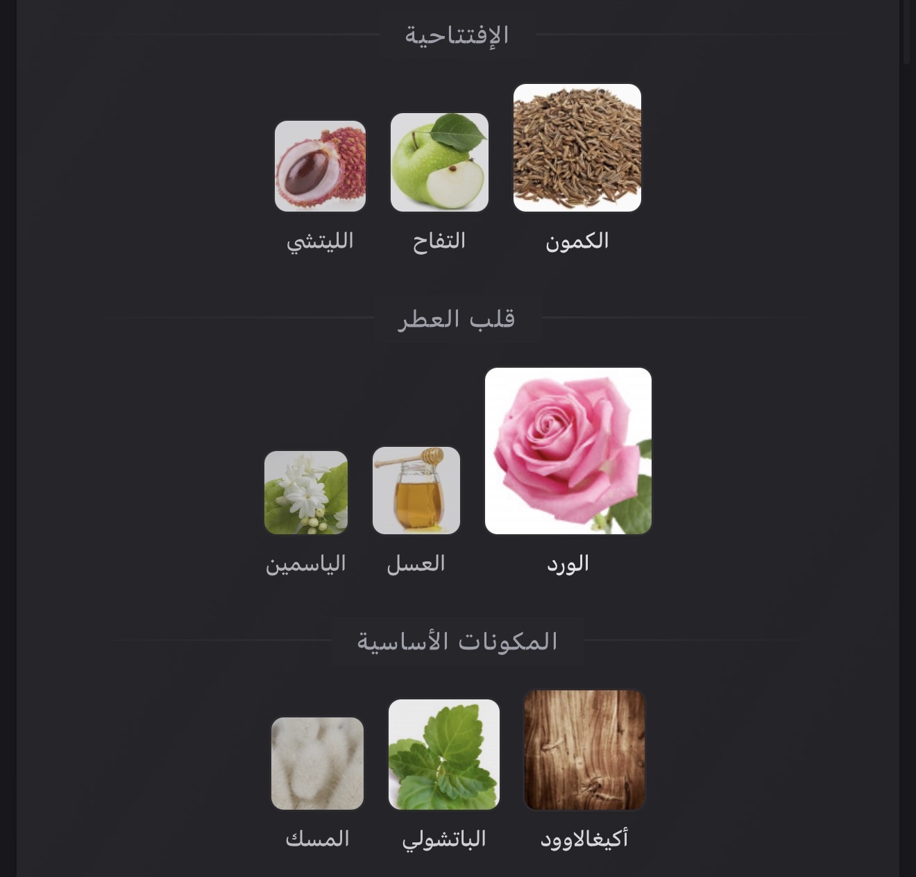 عطر خشبي - أروماتك للجنسين. Experimentum Crucis صدر عام 2019. Quentin Bisch قام بتوقيع هذا العطر. إفتتاحية العطر الكمون, التفاح و الليتشي; قلب العطر الورد, العسل و الياسمين; قاعدة العطر تتكون من أكيغالاوود, الباتشولي و المسك.