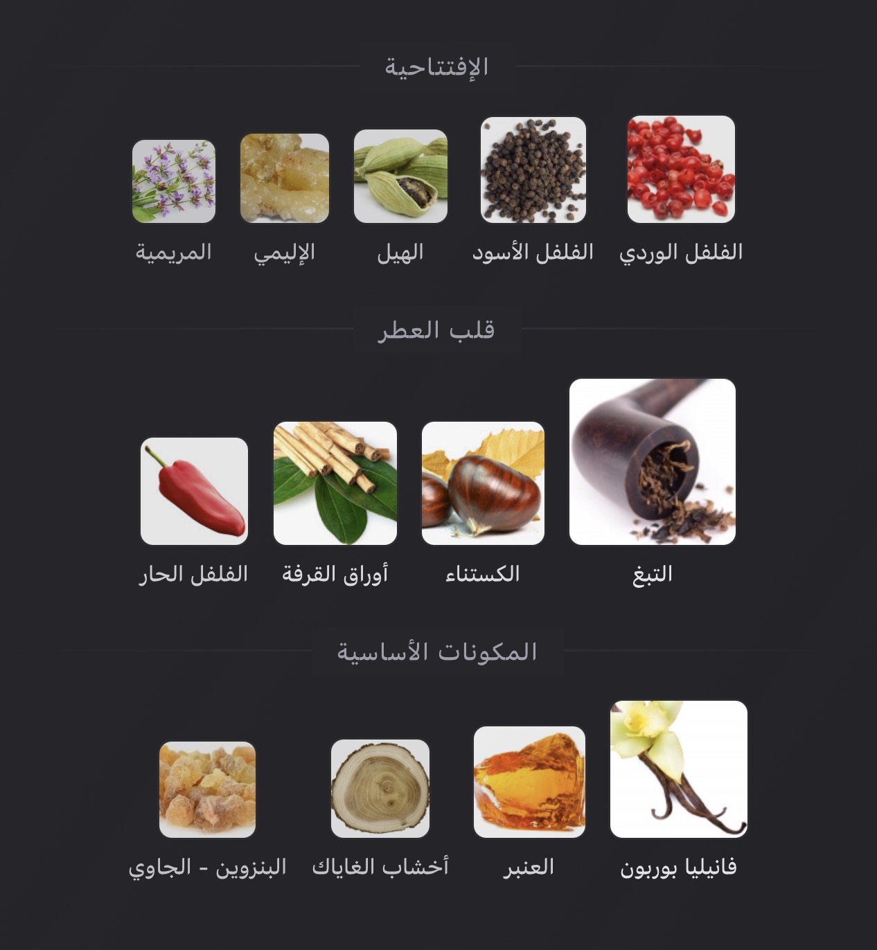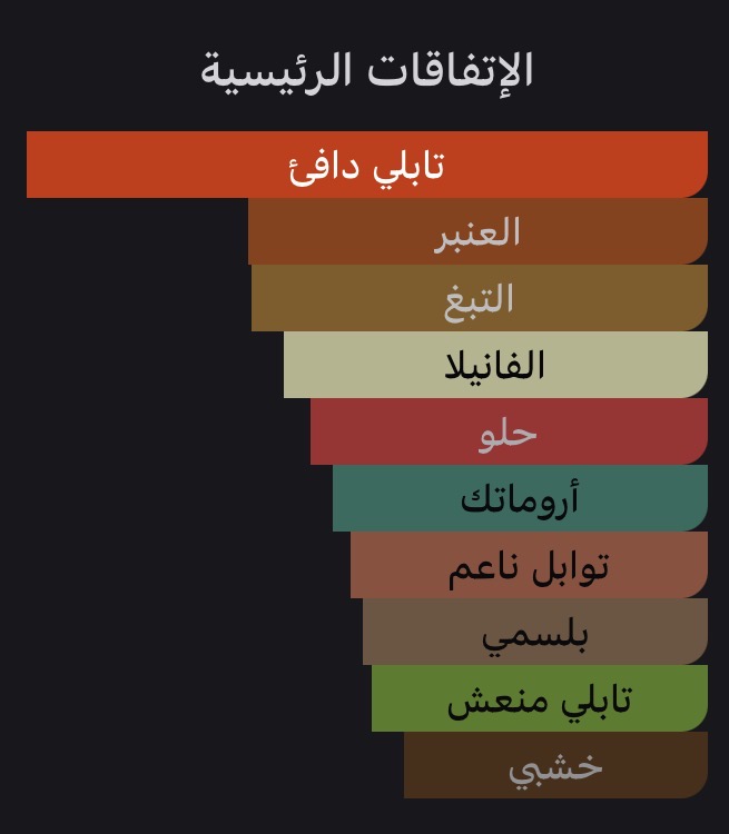 عطر شرقي - حار للرجال . Emporio Armani Stronger With You Tobacco صدر عام 2024. إفتتاحية العطر الفلفل الوردي, الفلفل الأسود, الهيل, الإليمي و المريمية; قلب العطر التبغ, الكستناء, أوراق القرفة و الفلفل الحار; قاعدة العطر تتكون من فانيليا بوربون, العنبر, أخشاب الغاياك و البنزوين - الجاوي.