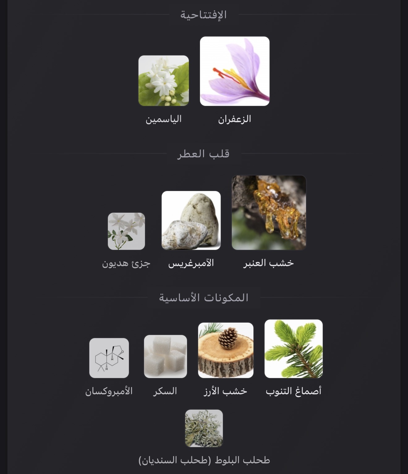 عطر شرقي - زهري للجنسين. Baccarat Rouge 540 صدر عام 2015. Francis Kurkdjian قام بتوقيع هذا العطر. إفتتاحية العطر الزعفران و الياسمين; قلب العطر خشب العنبر, الآمبرغريس و جزئ هديون; قاعدة العطر تتكون من أصماغ التنوب, خشب الأرز, السكر, الأمبروكسان و طحلب البلوط (طحلب السنديان).