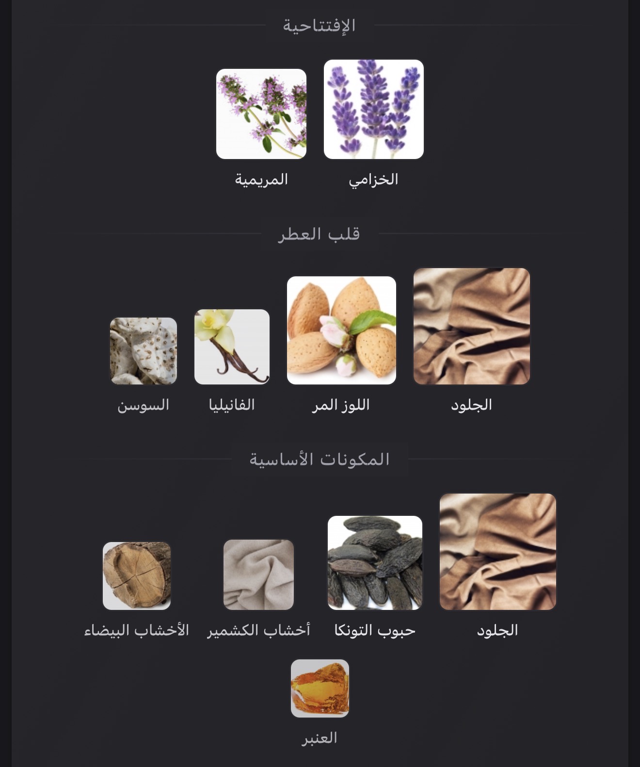 عطر الجلود للجنسين. Fabulous صدر عام 2017. إفتتاحية العطر الخزامي و المريمية; قلب العطر الجلود, اللوز المر, الفانيليا و السوسن; قاعدة العطر تتكون من الجلود, حبوب التونكا, أخشاب الكشمير, الأخشاب البيضاء و العنبر.
