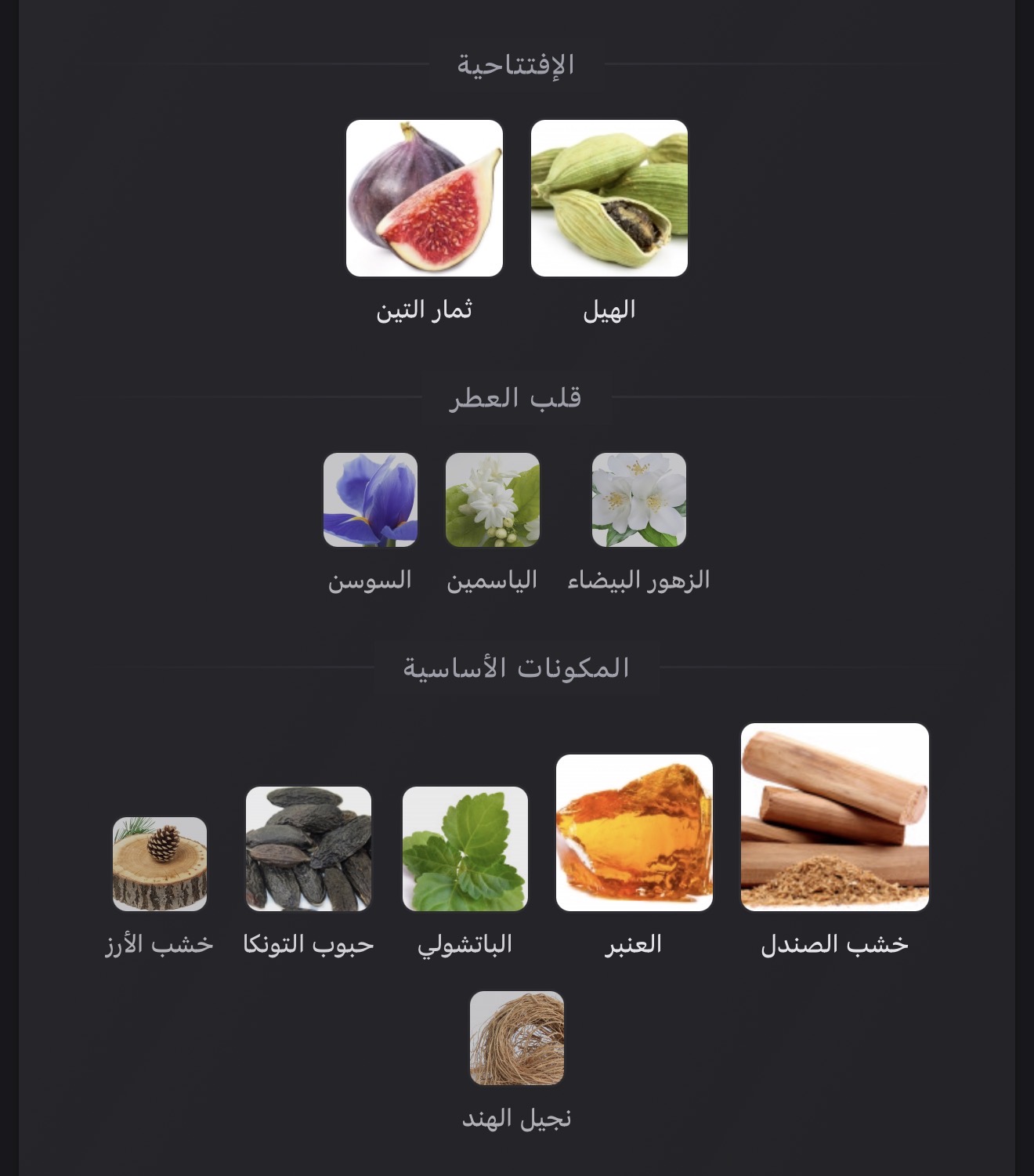 عطر زهري - خشبي - مسك للجنسين. هذا عطر جديد Aristia صدر عام 2024. إفتتاحية العطر الهيل و ثمار التين; قلب العطر الزهور البيضاء, الياسمين و السوسن; قاعدة العطر تتكون من خشب الصندل, العنبر, الباتشولي, حبوب التونكا, خشب الأرز و نجيل الهند.